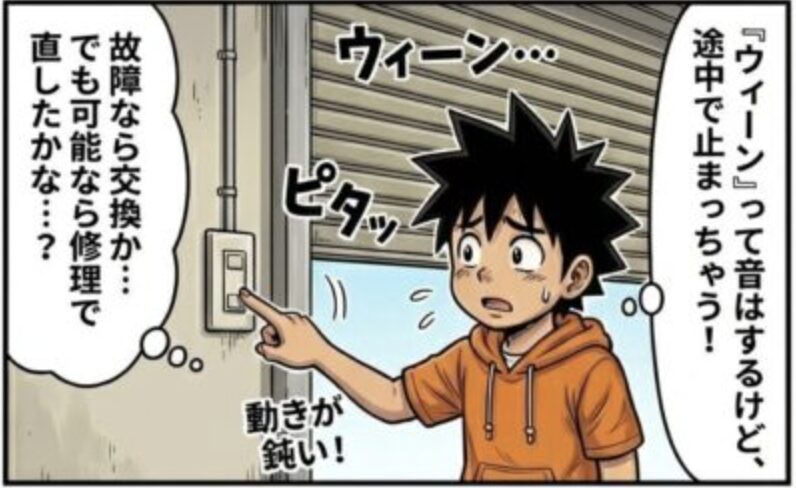 電動シャッターが動く際に「ウィーン」というモーター音はするものの、動きが鈍く、途中で止まりやすい状態。